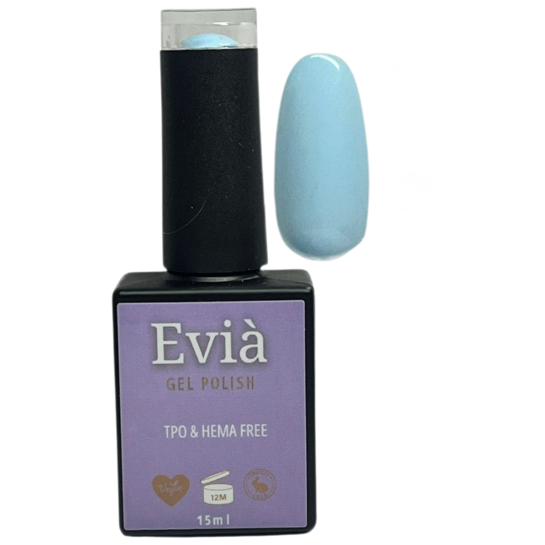Tip: Pair with Evià Rubber Base and Evià Top Coat for a flawless, durable finish and glass-like shine. Perfect for spring days, minimal chic looks, or anytime you want a touch of soft, sky-inspired elegance.