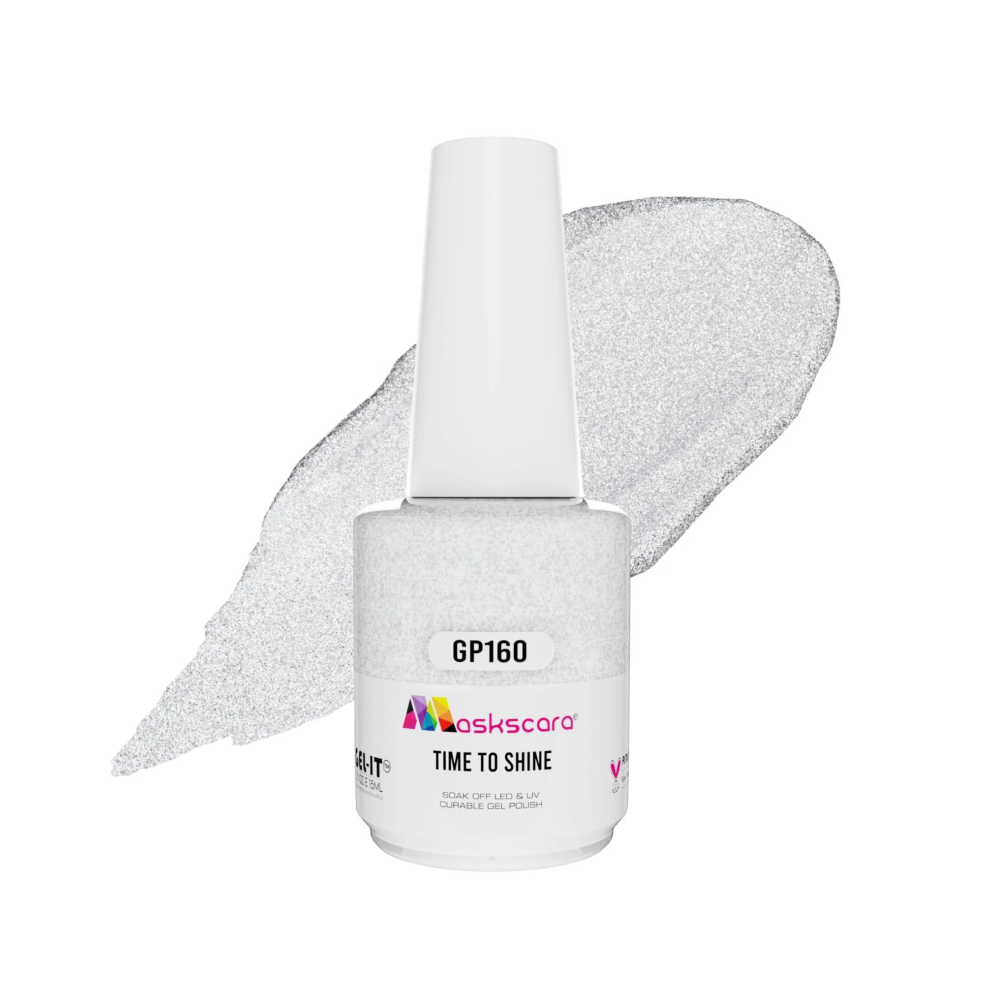 Silver Glitter LED & UV curable, Soak-Off Gel-iT Gel Polish proudly bottled in South Africa by Maskscara.